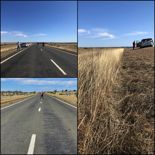 DeleteThanks for showing the map at the beginning to show me where we were going. I am always struck when the farm scenes look similar to my Kansas plains. But, then, a few photos later, it looks totally different - like kangaroos and wild camels! I enjoyed the splashes of color provided by your bright birds and the purple blooms. I also liked the photo of you and your friends' shadows by the sign. I've been struck by the "brownness" of the farm you suggested I follow: bulldust and mulga, so I guess this trip mirrors that color theme. Thanks for sharing.