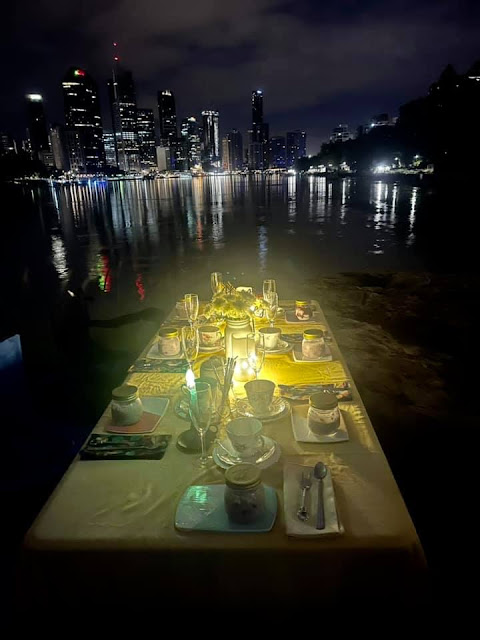 An amazing surprise, dawn breakfast on the bank of the Brisbane River.