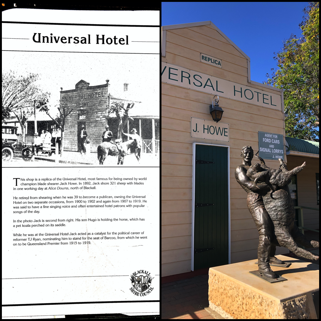 In 1900, Jack Howe Australia's famous shearer, abandoned shearing and bought the Universal Hotel. A replica has been built on the original site by his grand daughter and houses a small museum and garden centre.