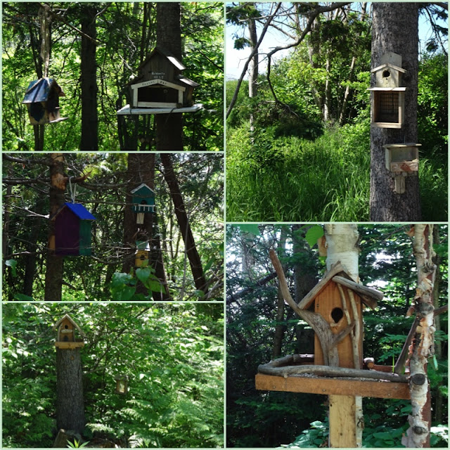 At the pond, we watched a kingfisher diving, ducks swimming and saw several bluejays flitting from tree to tree. As we walked, squirrels and chipmunks popped out of the forest and said a friendly hello. I loved all the feeding houses created for them.