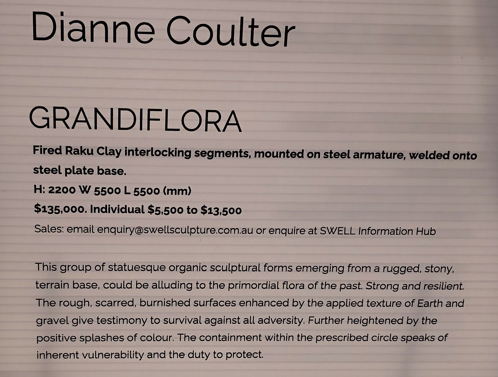 Swell welcomes the opportunity to work with artists, who are keen to break new ground in sculpture presentation and installation art."