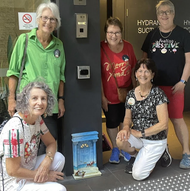4pm meet up in the city. The temperature was 33C as we left home. Thankfully a cool breeze off the river and shady paths, made this walk much more pleasant than anticipated. Our goal was to walk via the Kangaroo Point Cliffs, ferry to Riverside and then walk to Edward Street to search for the 6 new Tiny Doors, with a Christmas theme. 10 km walked.